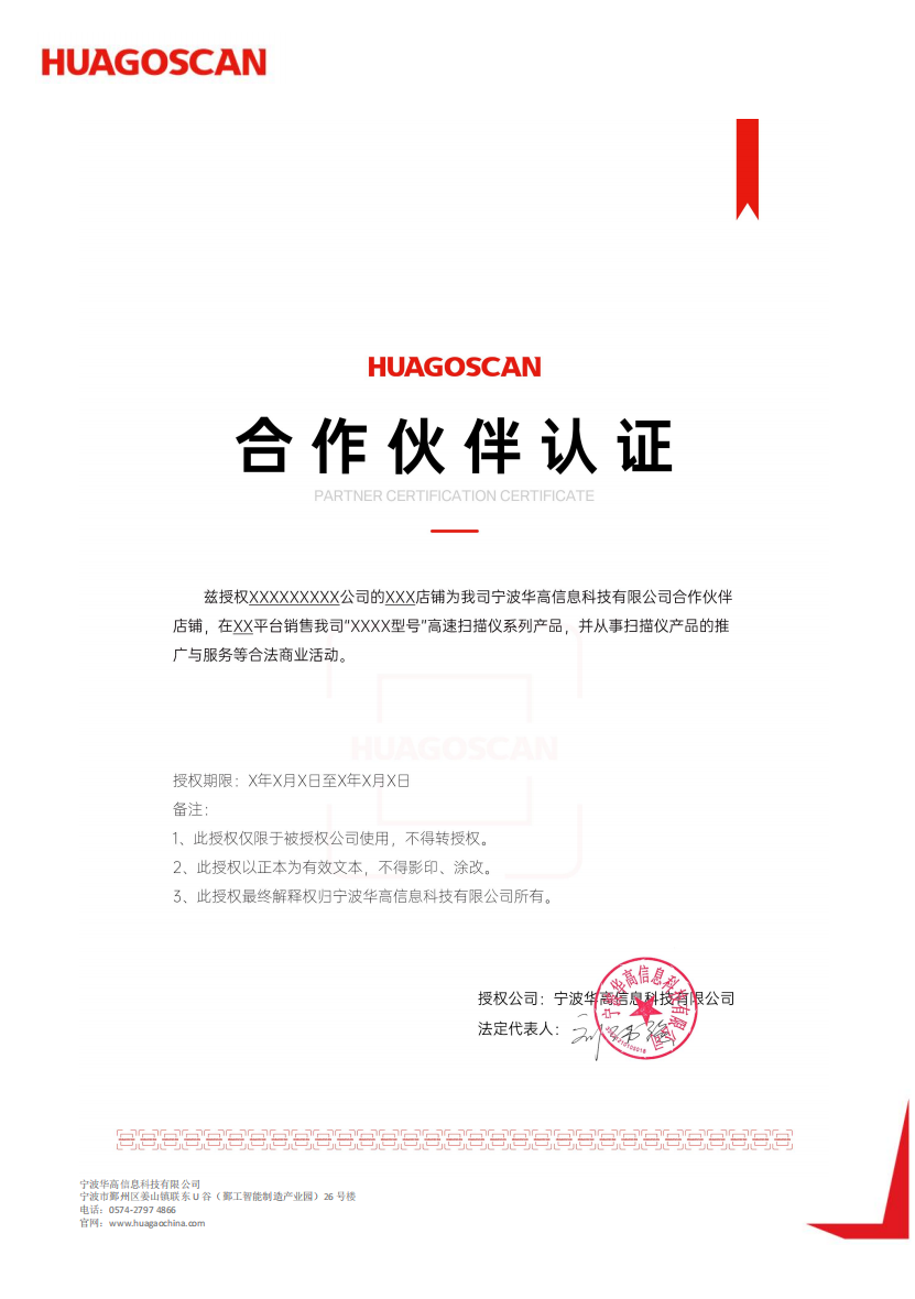 近期,寧波華高信息科技有限公司(以下統(tǒng)稱為“我公司”)在淘寶、京東、拼多多等網(wǎng)絡(luò)平臺上發(fā)現(xiàn)多個商家或個人未經(jīng)我公司授權(quán)的店鋪,這些店鋪隨意定價、隨意宣傳我公司(HUAGOSCAN)品牌的掃描儀設(shè)備以及相關(guān)零件和耗材,即無法保證產(chǎn)品的正規(guī)來源與質(zhì)量,也難以提供專業(yè)、完善的售后服務。同時他們所售賣的設(shè)備來源不明、以舊冒新,缺乏必要的檢測與維護,在使用過程中可能會頻繁出現(xiàn)故障,給用戶的使用帶來極大的不便,甚至可能因質(zhì)量問題造成安全隱患,上述行為對我公司用戶造成誤導和混淆。